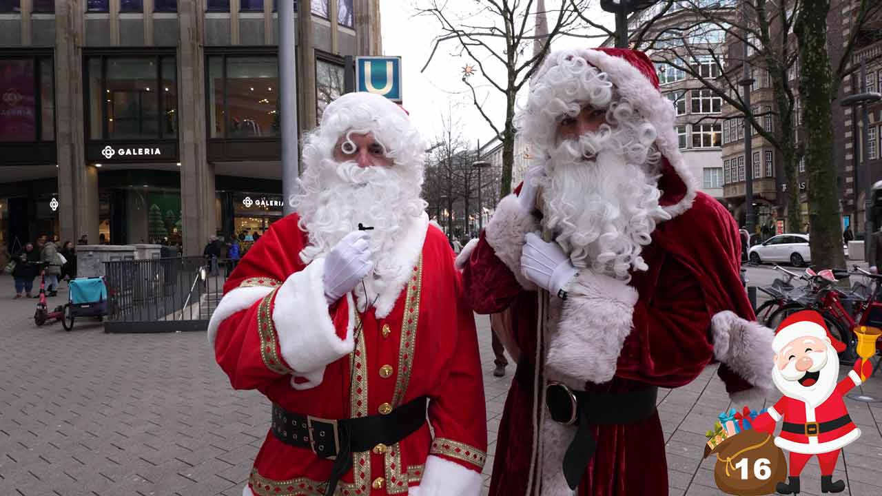 Es weihnachtet sehr! Grund genug also für Etienne und Holger, einfach mal in der Hamburger Innenstadt ein bisschen Schokolade zu verteilen - und zwar verkleidet als klassische Weihnachtsmänner. Kinder und Erwachsene freuen sich gleichermaßen über eine kleine Süßigkeit. Und nebenbei ergeben sich auch noch ein paar freundliche Gespräche.