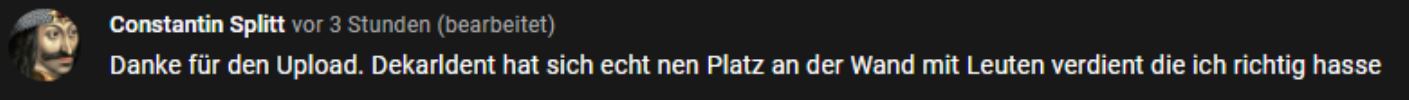 Vor kurzem hat auch KuchenTV ein Video veröffentlicht, dass die Doppelmoral von Dekarldent deutlich aufzeigt: