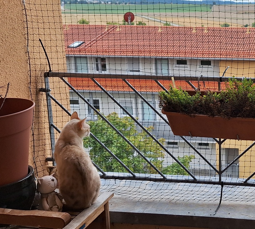 Bei den beiden Katzen, die wir früher hatten war der Balkon nie ein Problem, die blieben immer brav drin, haben sich in die Sonne gelegt und nicht mal ansatzweise versucht, über das Geländer zu klettern. Unsere jetzigen beiden sind da anders. Vor allem der Bengale ist total neugierig und abenteuerlustig - ohne Sicherung wäre das viel zu riskant. Da muss nicht mal was sein, was ihn ablenkt, das ist eher „Ui, da war ich noch nicht, da will ich jetzt hin.“