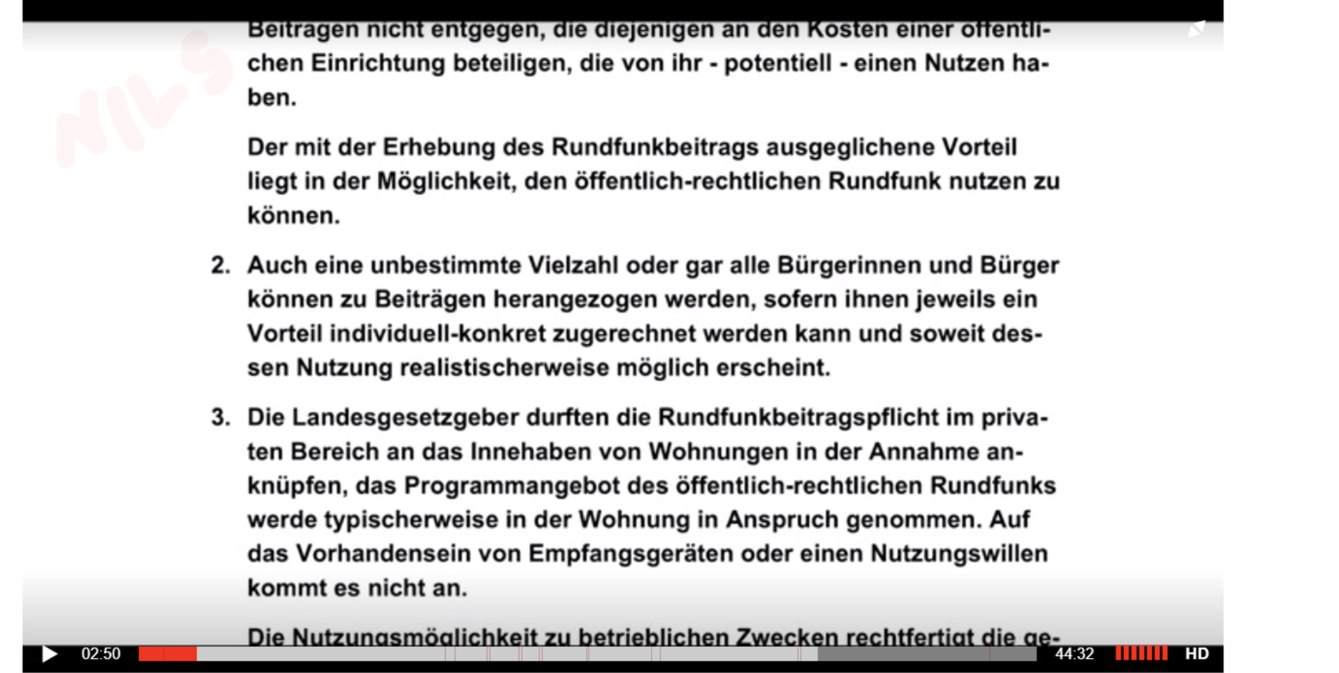 Ich könnte ja jetzt nochmal ganz genau versuchen zu verklickern wie das BVG eigentlich zusammengesetzt wird und dass es praktisch so ist, das jeder Richter Zustimmung von Regierung und Opposition-also auch von Parteien, die gegen den Rundfunkbeitrag sind-benötigt.