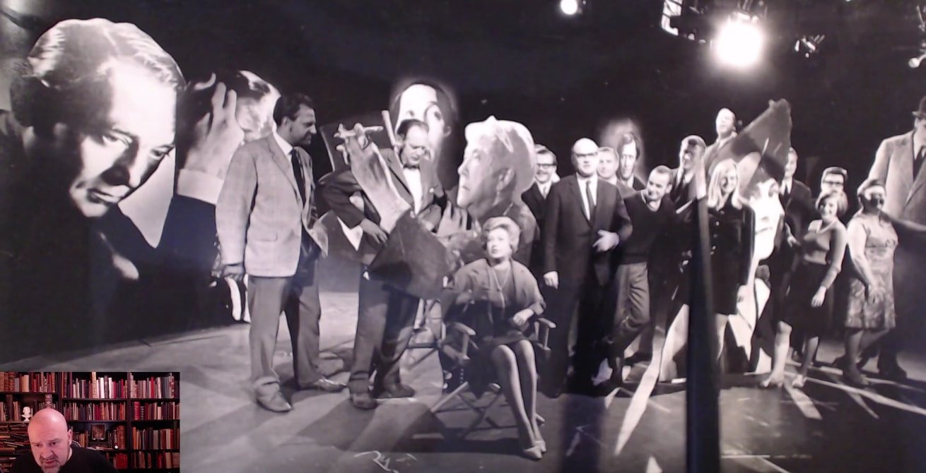 Die Frau auf dem Stuhl ist Loni Heuser oder Grethe Weiser. Der ältere Mann ganz links könnte ( meiner Meinung nach ) der UFA Schauspieler Otto Gebühr sein. Ich nehme an das Bild entstand während einer Fernsehshow um 1960 in der ältere Schauspieler Thema waren. Gebühr verstarb 1954.