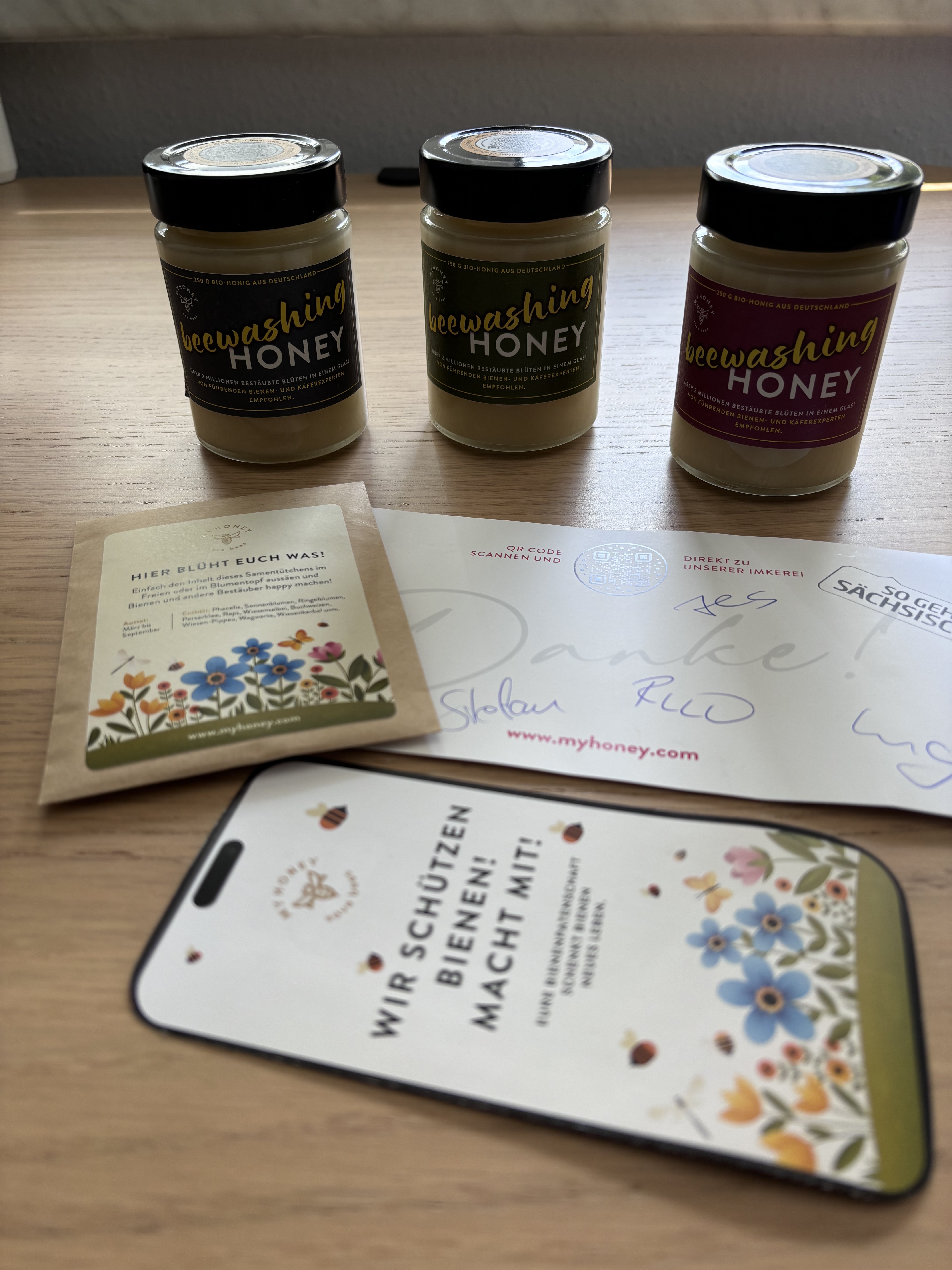 Mein Familienteil aus Syrien stellt auch Honig her, der darf aber in Deutschland wegen Sanktionen nicht verkauft werden. Der ist richtig naturbelassen und es sind auch Wabenstückchen drin. Die kann man mitessen oder wie Kaugummi kauen und sie schmecken neutral. Man kann sie aber auch rausnehmen.