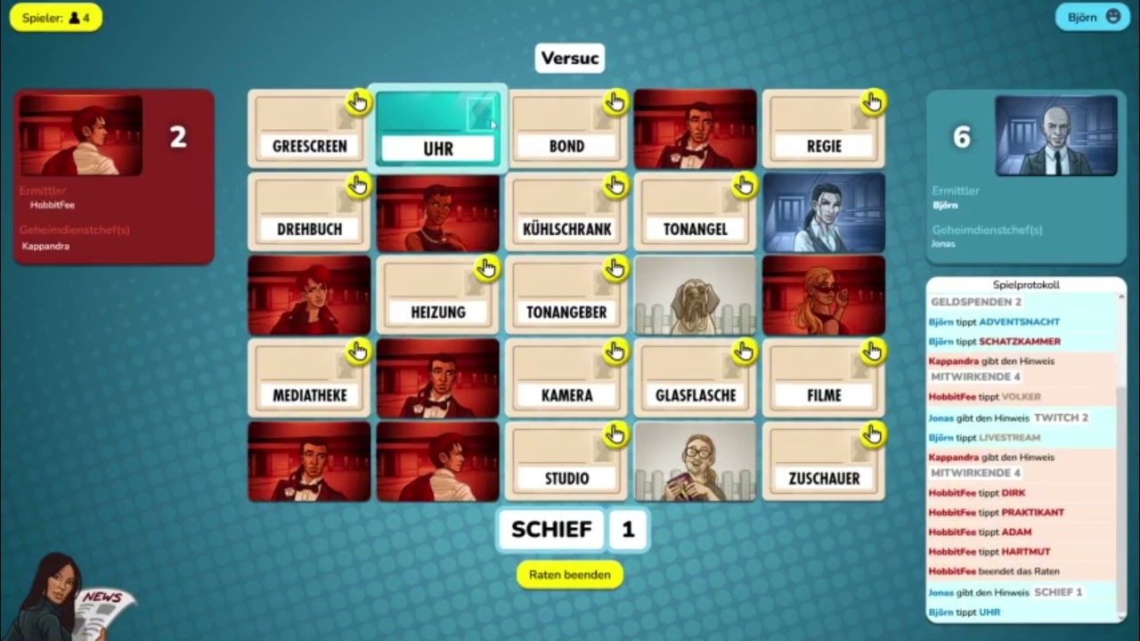 Und Codenames ist sowieso ein geniales Spiel, sowohl als Brettspiel als auch in der gelungenen Onlineversion. Zuschauen macht auch hier wieder Spaß.