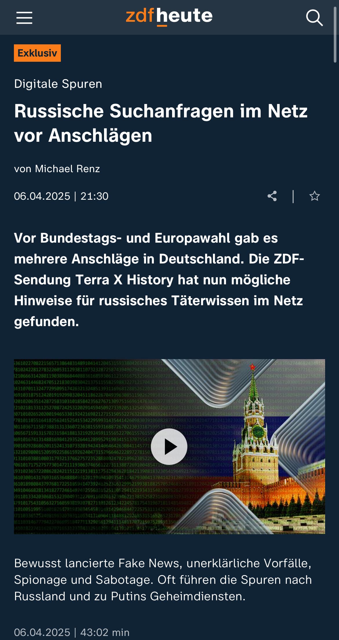 Ich bin ja oft mit Holger einer Meinung aber hier muss ich wiedersprechen. Sicherlich gibt es Trittbrettfahrer und Leute, die mit ihrer Privatdrohne den Flugverkehr behindern. Aber die Häufung von Vorfällen im aktuellen politischen Kontext ist doch auffällig und sehr bedenklich, da es zeigt, wie verletzlich unsere Infrastruktur ist. Dass Russland hinter all dem steckt, ist wirklich keine große Neuigkeit und zahlreiche Experten sehen das als große Gefahr für unser Land. Das finde ich wurde im Beitrag alles heruntergespielt und beinahe geleugnet, dass Russland eine Gefahr für uns schon jetzt darstellt.