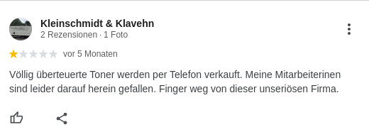 Volker kommentiert Google-Bewertungen mit max. 3 Sternen seines Ladens hätte enormes Potenzial ![]()