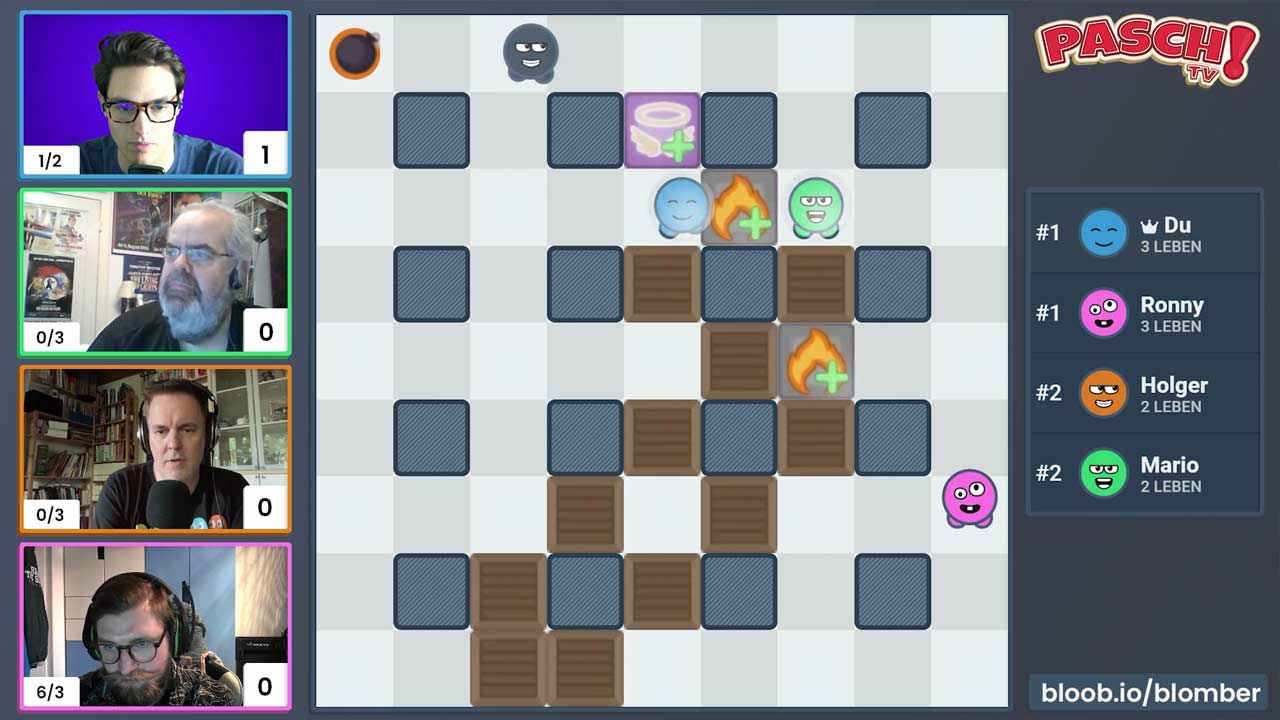 Gespielt wird wieder online - und zwar ein echter Videospielklassiker: Blomber, auch besser bekannt unter „Bomberman“. In dem Spiel geht es darum, Bomben zu platzieren und gleichzeitig aber auch denen des Gegners auszuweichen. Das kann mitunter zu ganz schön verzwickten Situationen führen. Nur wer klug bombt, der gewinnt.