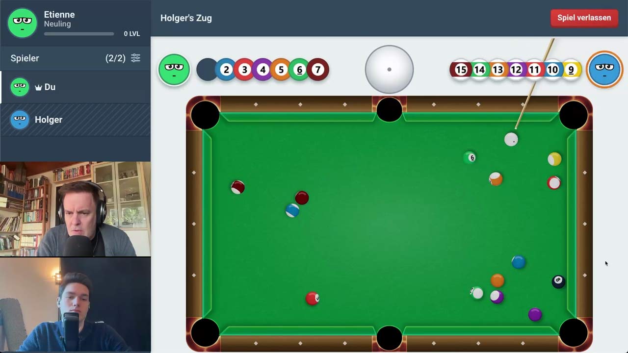 Zum Jahresende spielen Etienne und Holger einfach mal drei kleine klassische Online-Spiele nacheinander. Los geht es mit Billard: Wer wird hier wohl besser einlochen? Dann geht es weiter mit einem riesigen Buchstabengitter und der Frage, wer mehr Wörter in dem Salat findet. Und schließlich ein weiterer Klassiker: Es wird Yahtzee (bzw. Kniffel) gespielt, wo es um Würfelglück, aber auch ein wenig Strategie geht. Guten Rutsch!