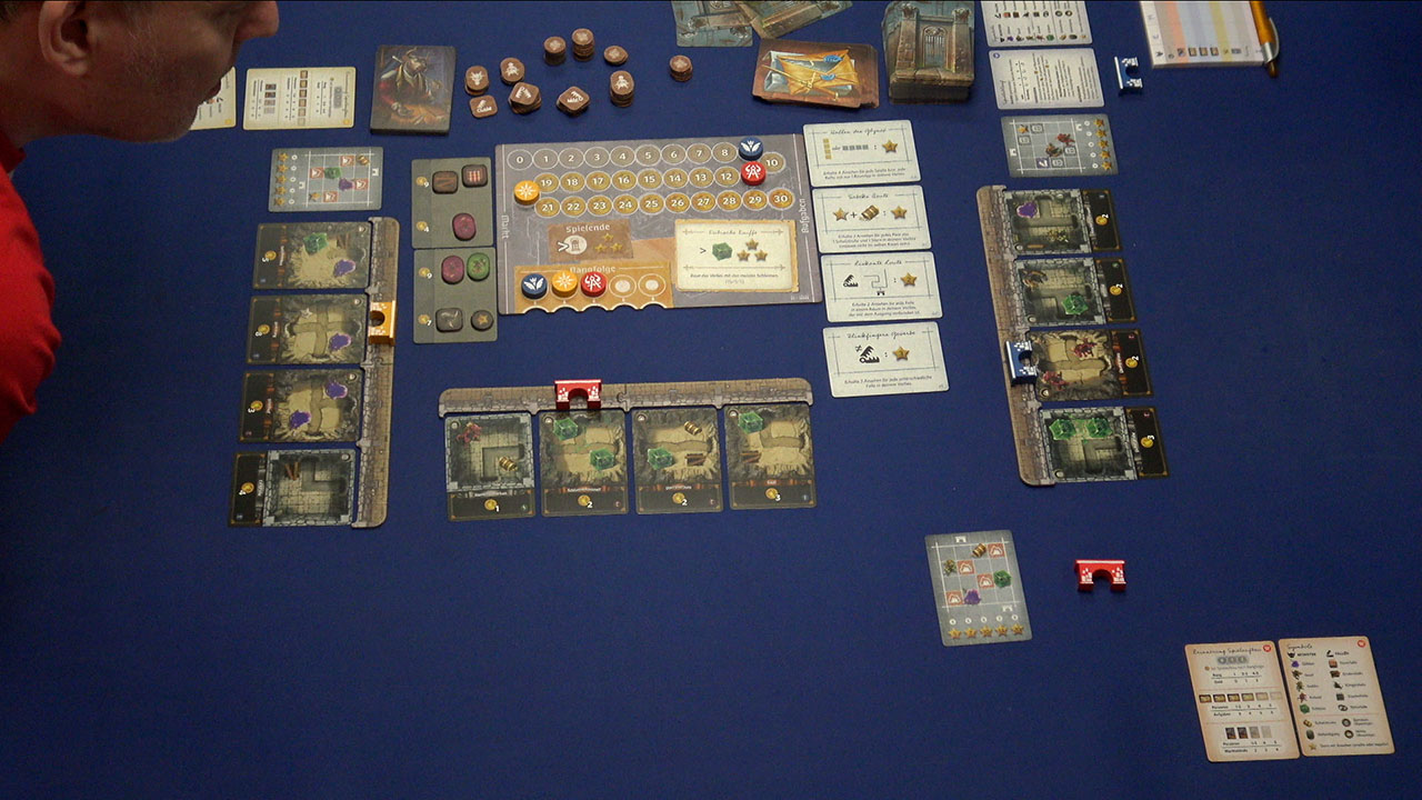 Willkommen in der Welt der Goblins, der Schatztruhen und der bösartigen Fallen! In „Dungeon Designer“ muss jeder Spieler sein eigenes Verlies bauen - aber dabei gilt es, viele Vorgaben zu beachten. Denn nur wer das perfekte Verlies baut, das möglichst viele Aufgaben erfüllt, sahnt am Ende auch die meisten Punkte ab. Wer am Tisch wird hier der Dungeon Master?
