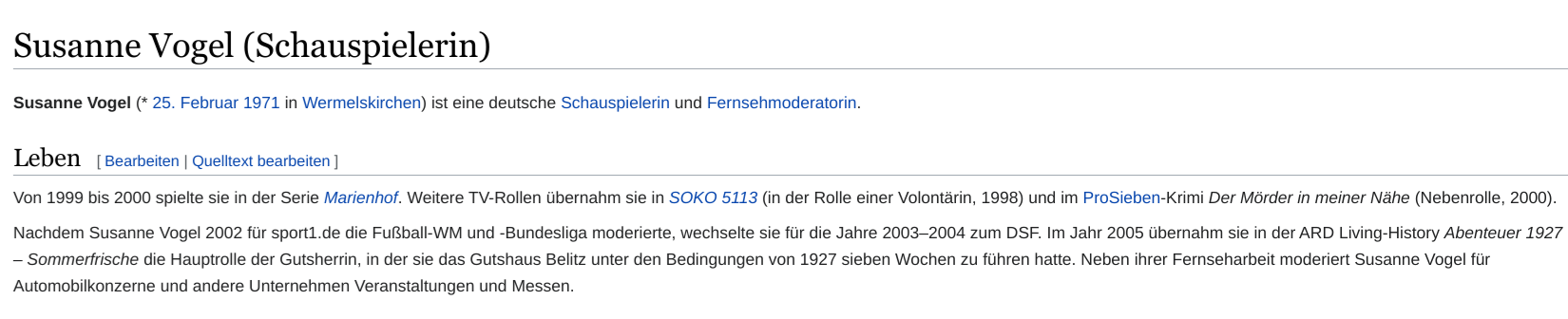 Immerhin. Die sagt mir was. War die nicht auch mal bei SOKO unterwegs?