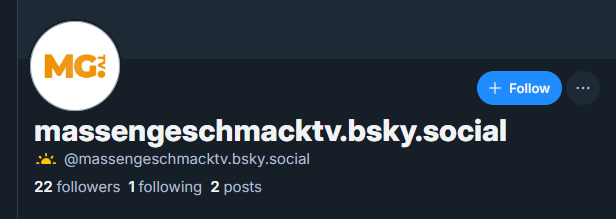 Massengeschmack verfügt nun über einen weiteren Bluesky-Account (mit einem weiteren Post). Man kann die btw. auch mehrfach benutzen.