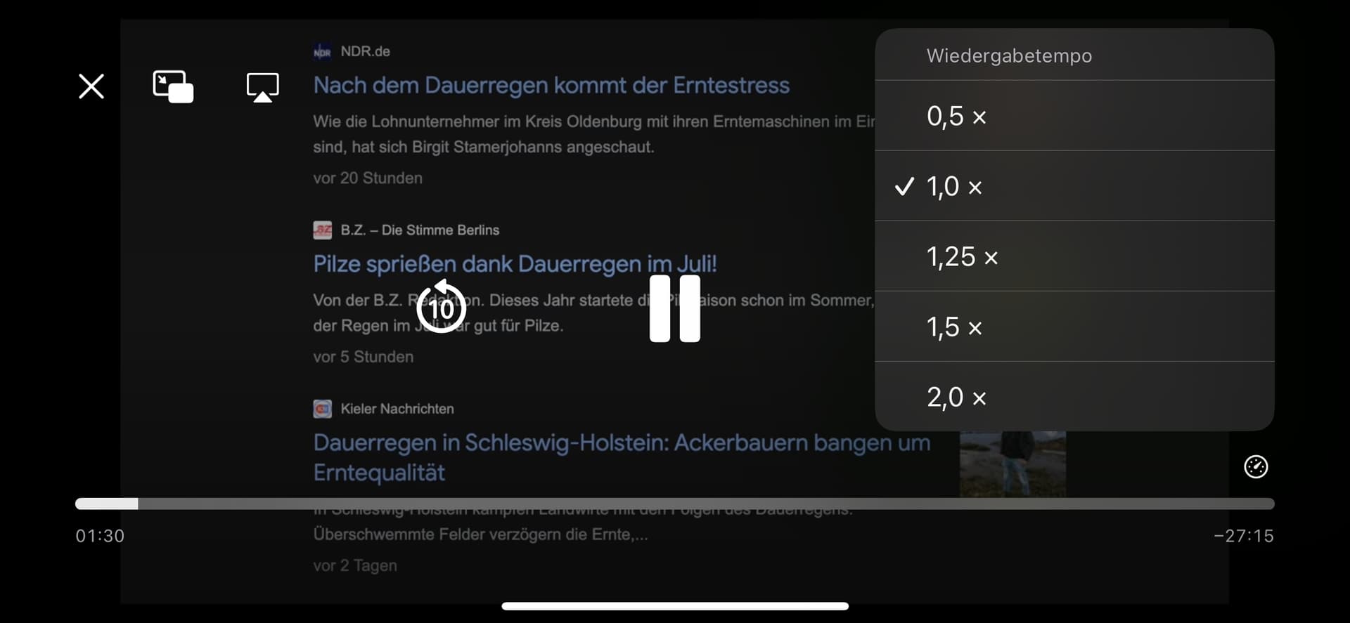 Kann mir jemand sagen wie man auf dem iPad in Safari die Abspielgeschwindigkeit verändern kann?