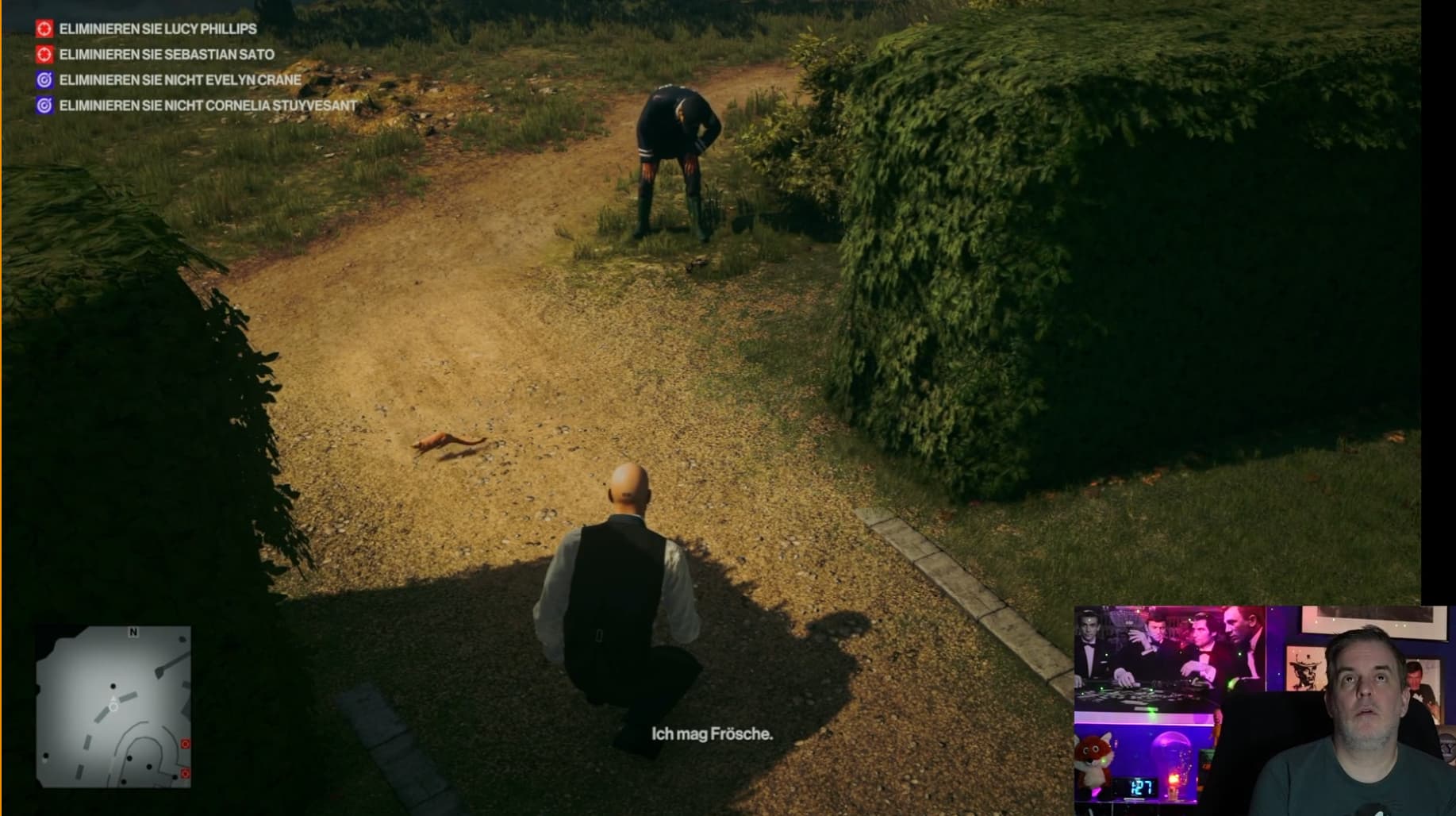 Die Idee zu dem Sommerkalendertürchen wurde übrigens in diesem Betreuten Zocken beim Spiel „Hitman“ geboren, als Holger verzweifelt versuchte einen Frosch für ein bestimmtes Gift zu fangen: