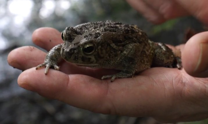 Die Haut sieht aber ziemlich warzig aus und es sind keine Schwimmhäute zwischen den Zehen zu erkennen. Ohne Experte zu sein, würde ich daher doch eher auf Kröte tippen.