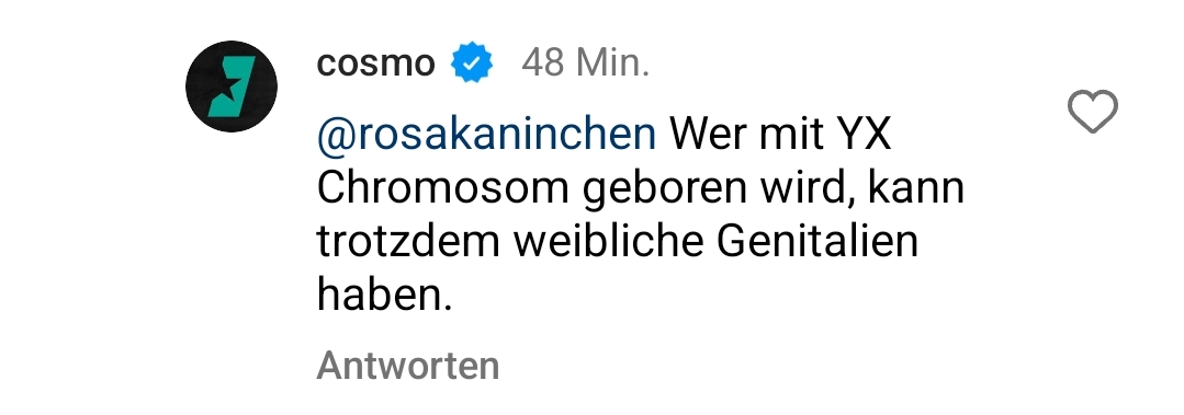 Diese Stimme lässt das WDR-Magazin Cosmo dafür heute auf Insta zu Wort kommen: