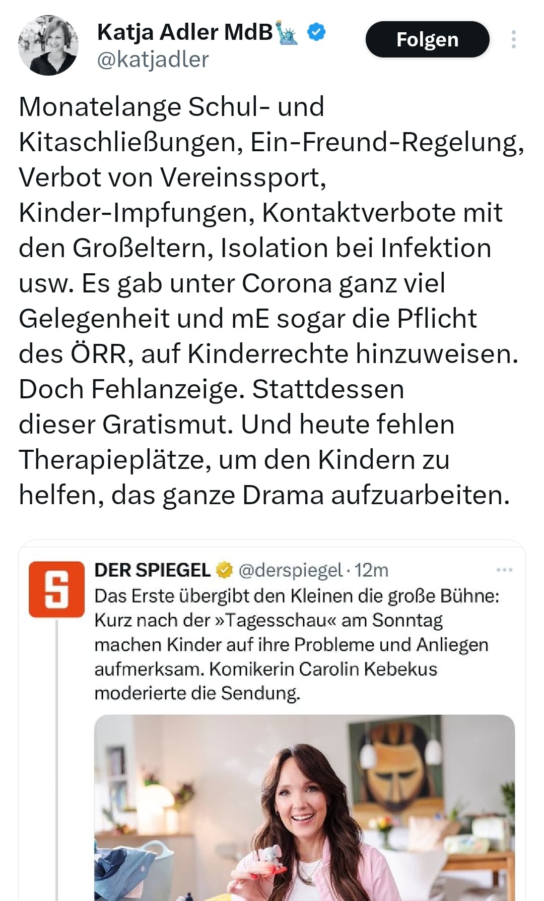 Und grundsätzlich kann man die Frage stellen: Ist Politaktivismus eine Aufgabe der ÖR?
